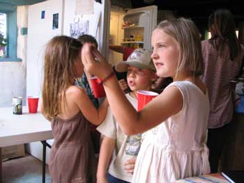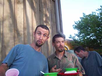 Preparing the feast at the Solstice Reunion | Pam Hanna, Alfred Hobbs, Glenda and friend | |||